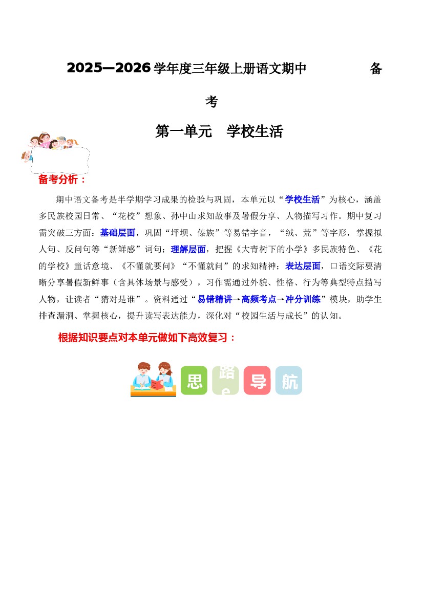 第一单元 学校生活(易错精讲+高频考点+重点训练)三年级语文上册期中高效复习备考(统编版·新教材)