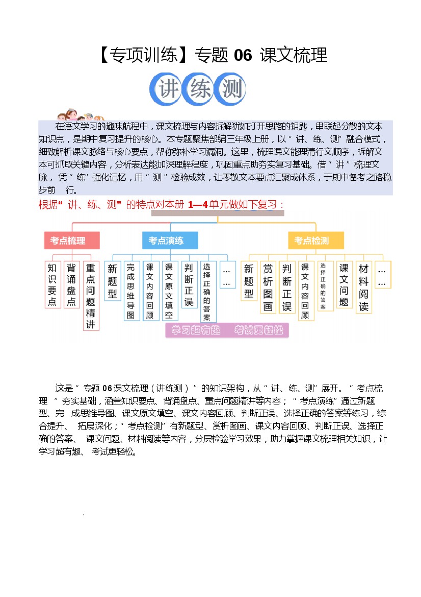专题 06 课文梳理(期中专项训练)三年级语文上学期(统编版·新教材)