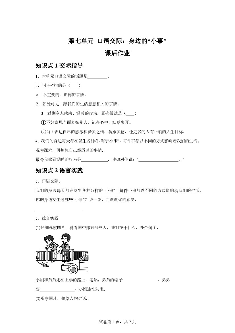 25年秋【三上语文】第七单元口语交际:身边的“小事”课后作业