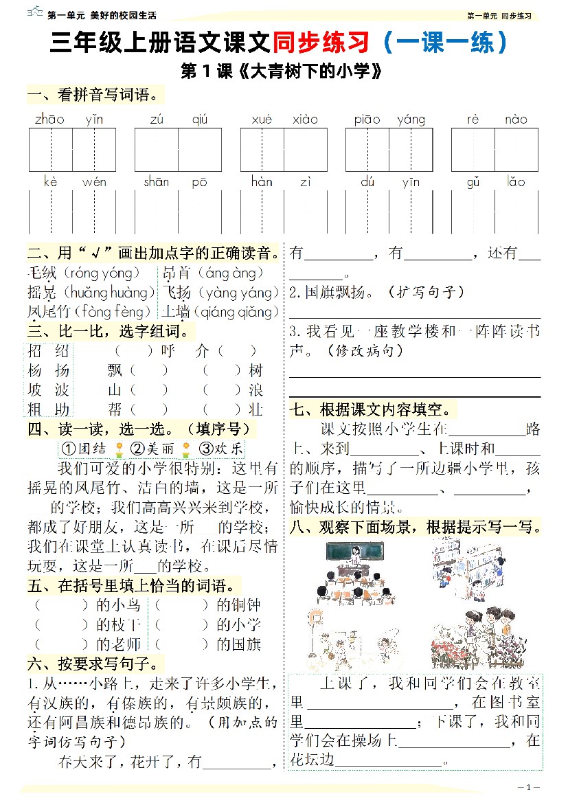 三年级(上)语文 同步练习一课一练