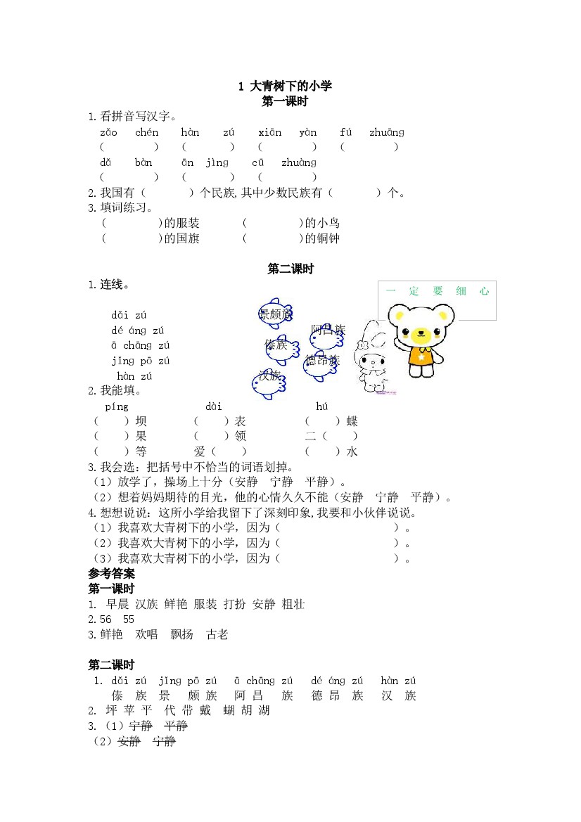 三年级上册语文课后习题答案汇总
