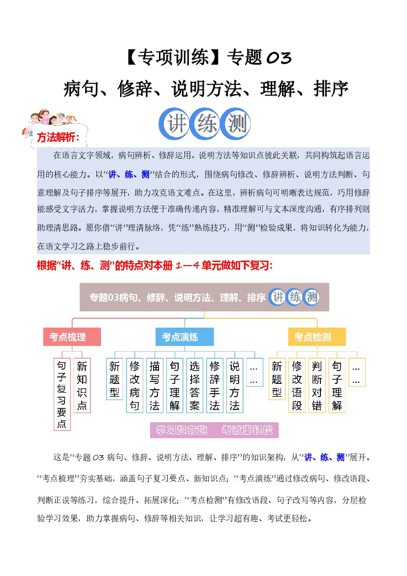四年级(上)语文 期中专项训练专题3:病句、修辞、说明方法、理解、排序