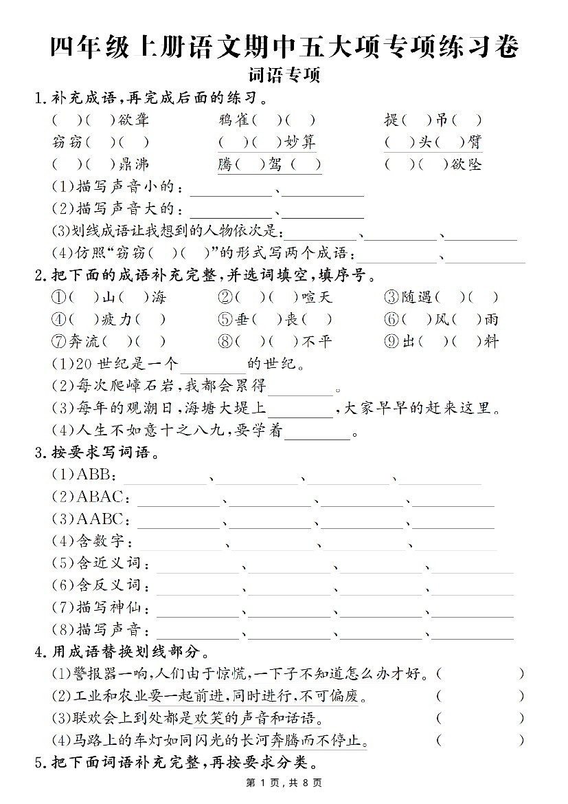 四年级(上)语文 期中专项训练专题5:古诗文和日积月累