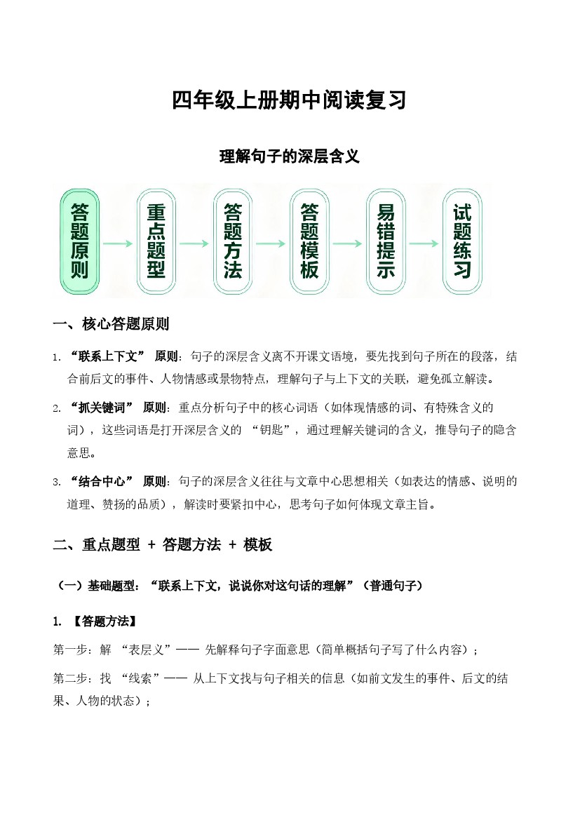 四年级(上)语文 期中阅读复习(理解句子的深层含义)
