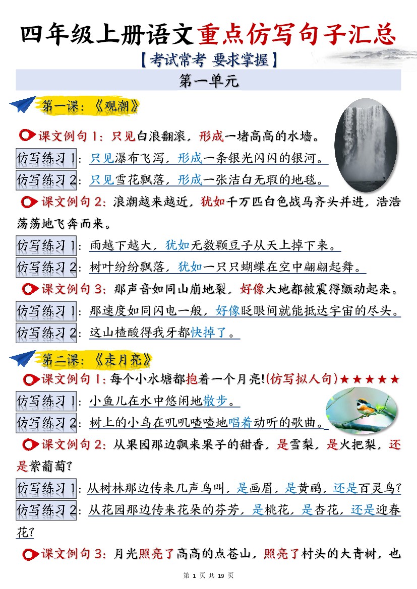 专题 05古诗文和日积月累(考点+试题)四年级语文上册期中专项复习(统编版)