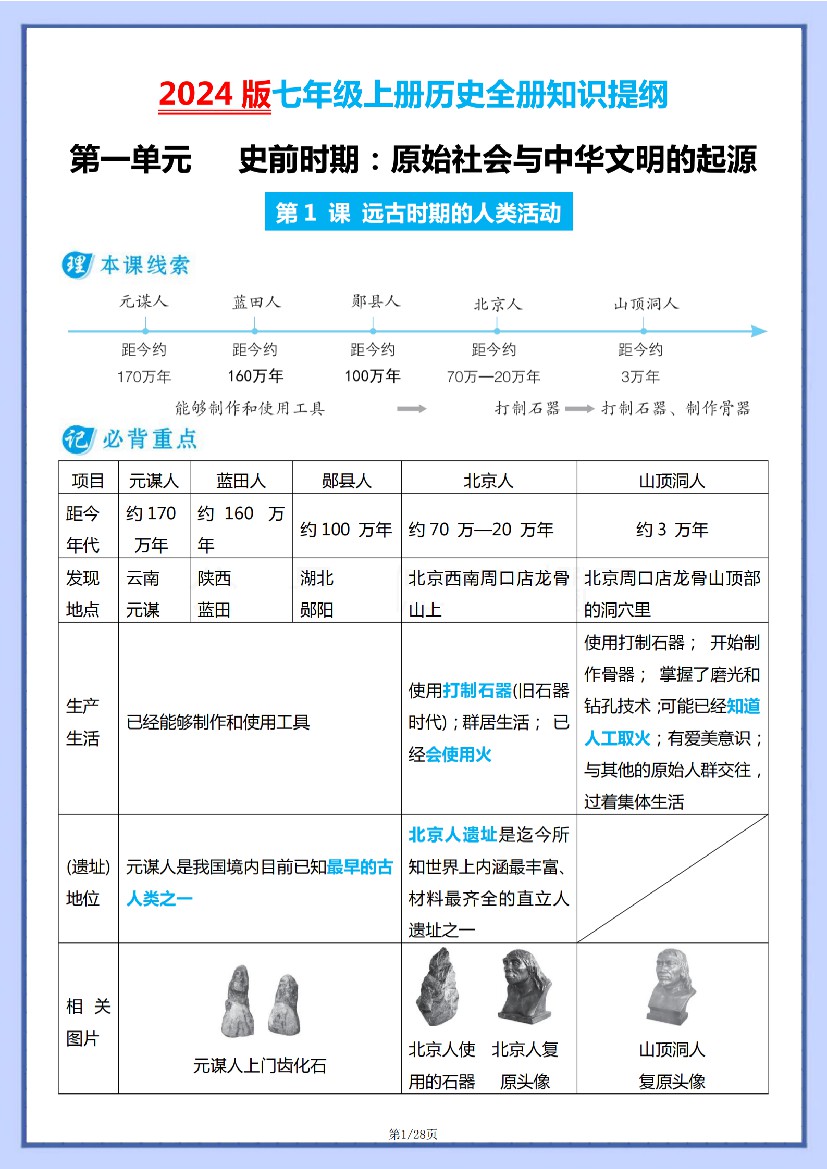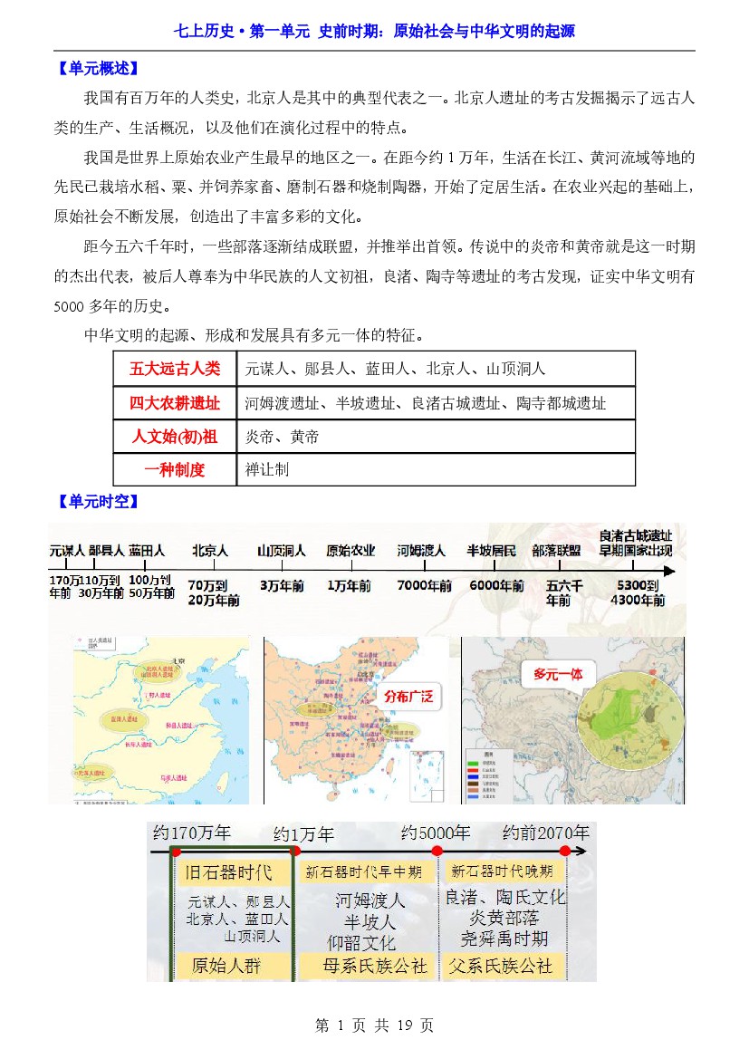 01 第一单元 史前时期:原始社会与中华文明的起源(知识梳理)