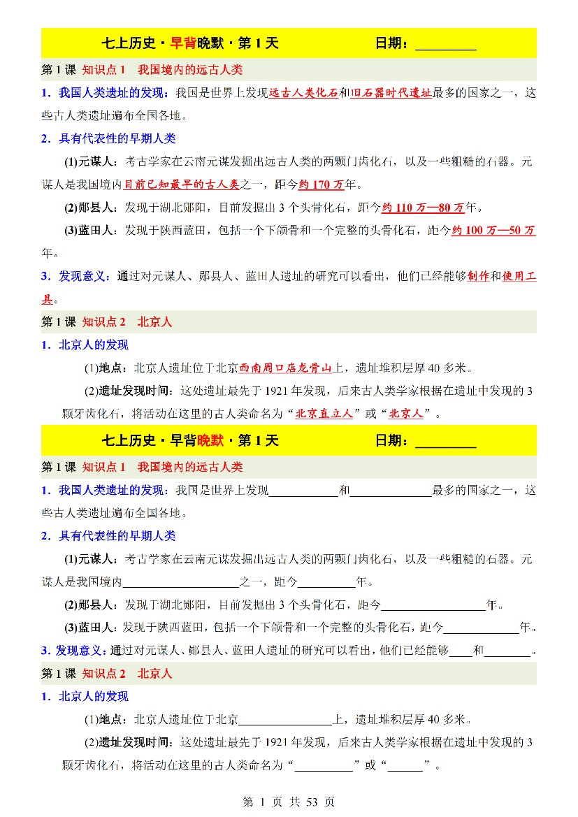 七上历史早背晚默(新版)