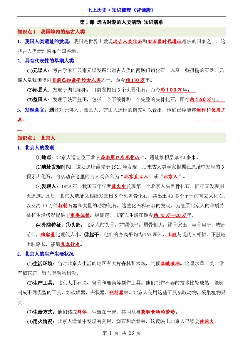 七上历史知识梳理(背诵版)