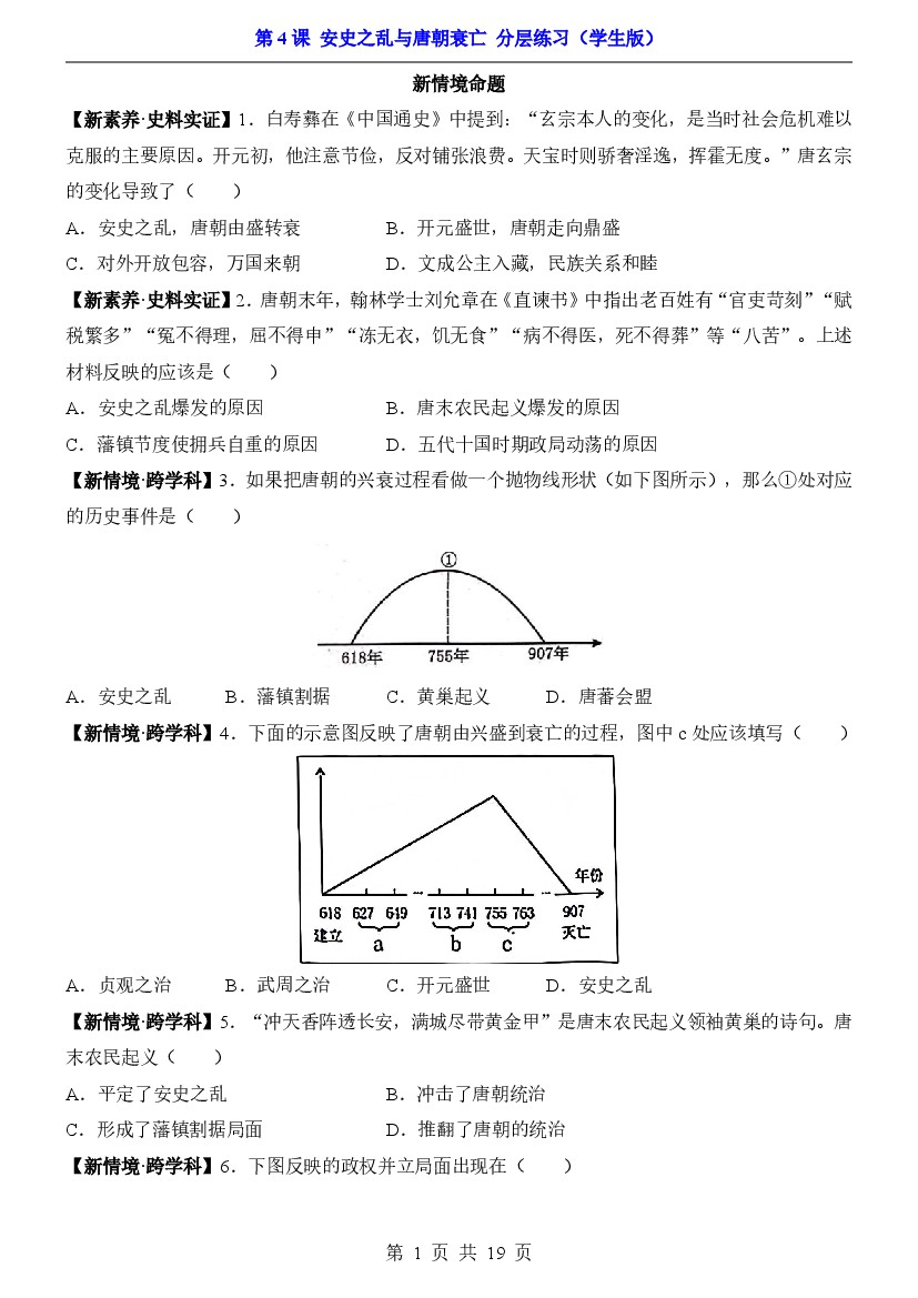 2025年七下历史一课一练第4课安史之乱与唐朝衰亡(分层练习)