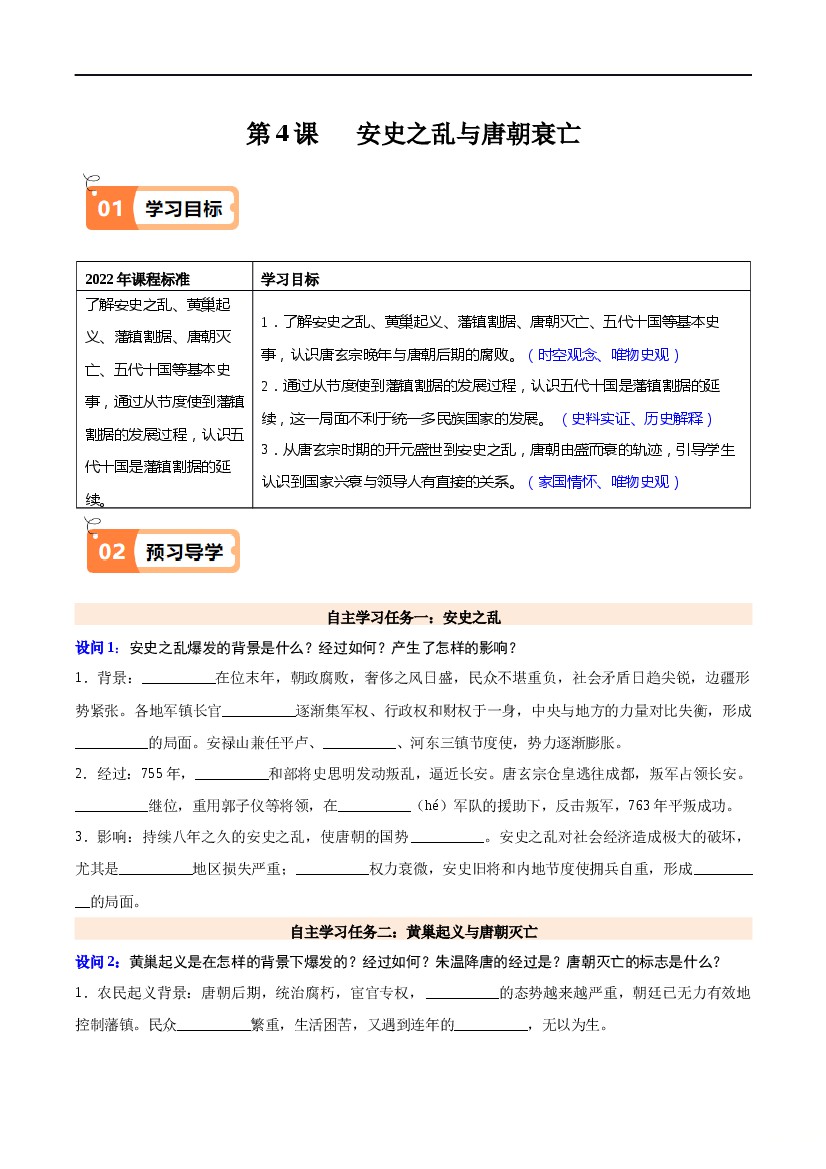 2025年七下历史一课一练第4课安史之乱与唐朝衰亡(原卷版)-七年级历史下册同步学与练(统编版)