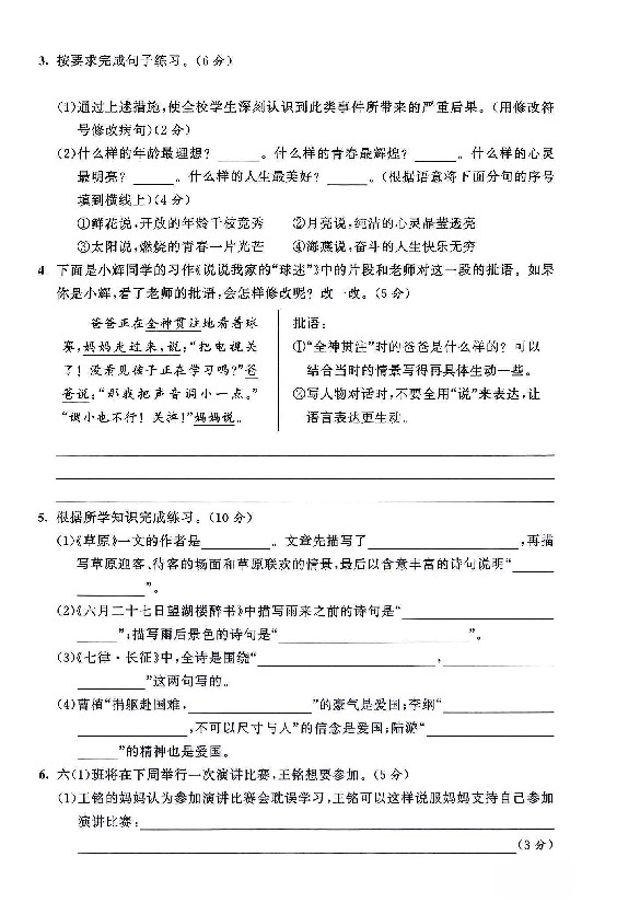 首页 > 全部 > 期中试卷 > 2025-2026学年六年级上册语文期中试卷2
