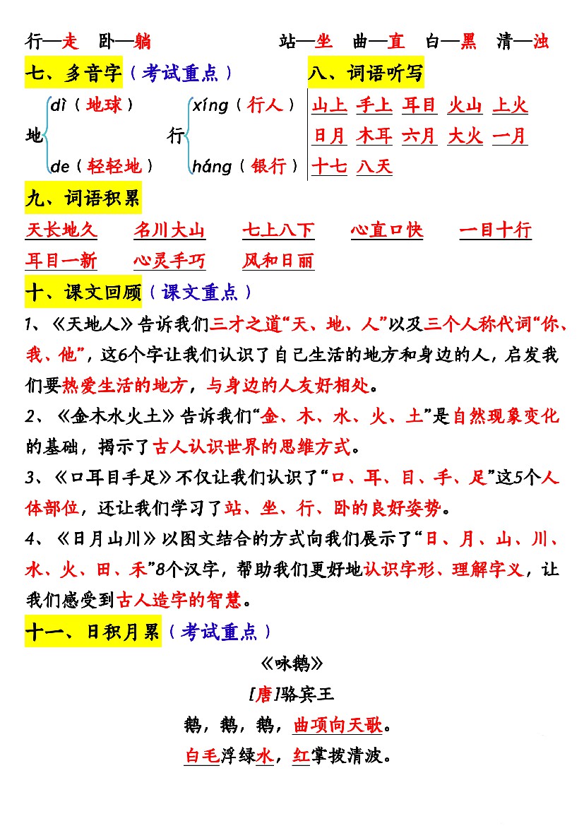 首页 > 全部 > 知识要点 > 一上期中高频考点