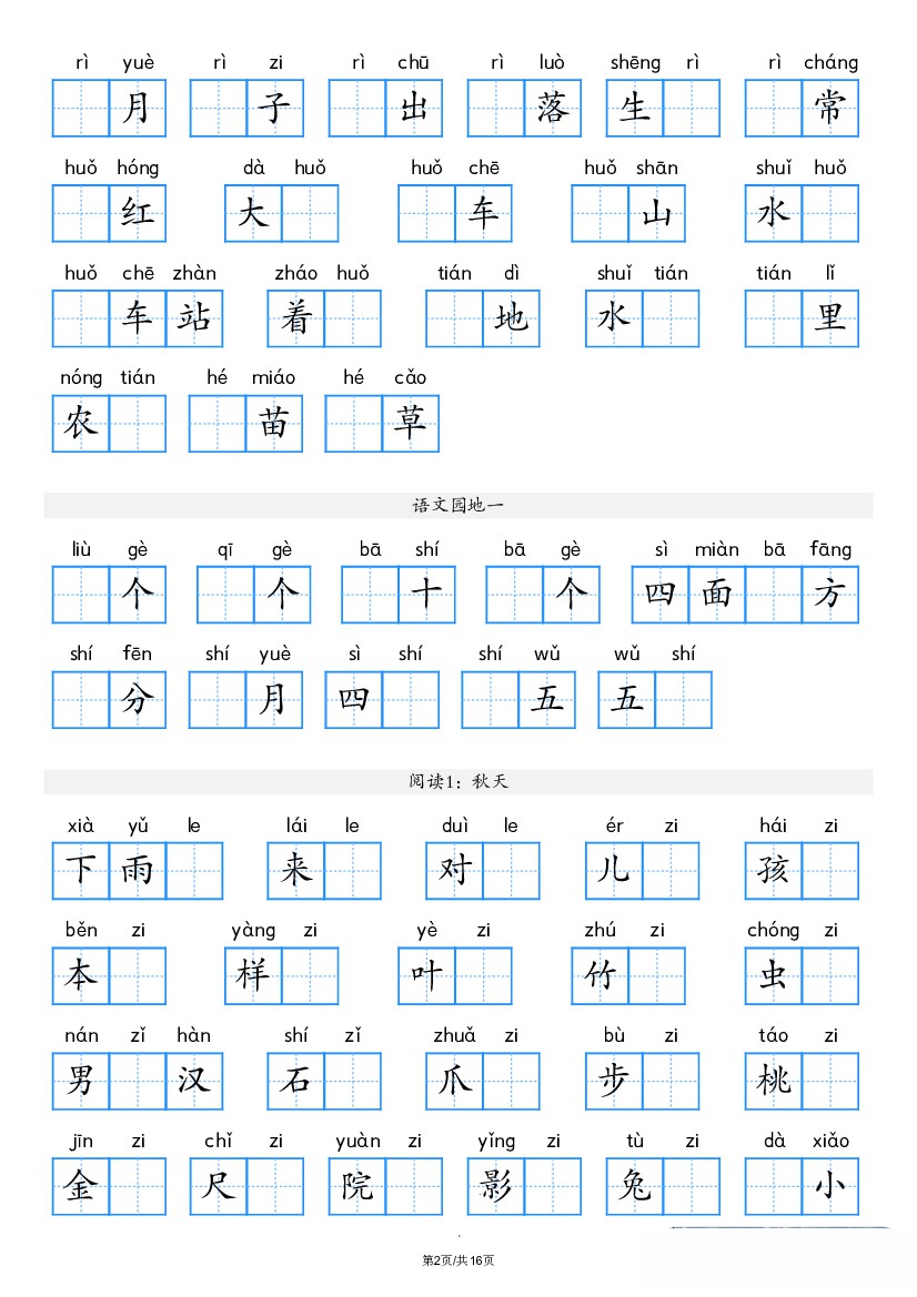 首页 > 全部 > 基础字词 > 25秋新版一年级上册看拼音写词语