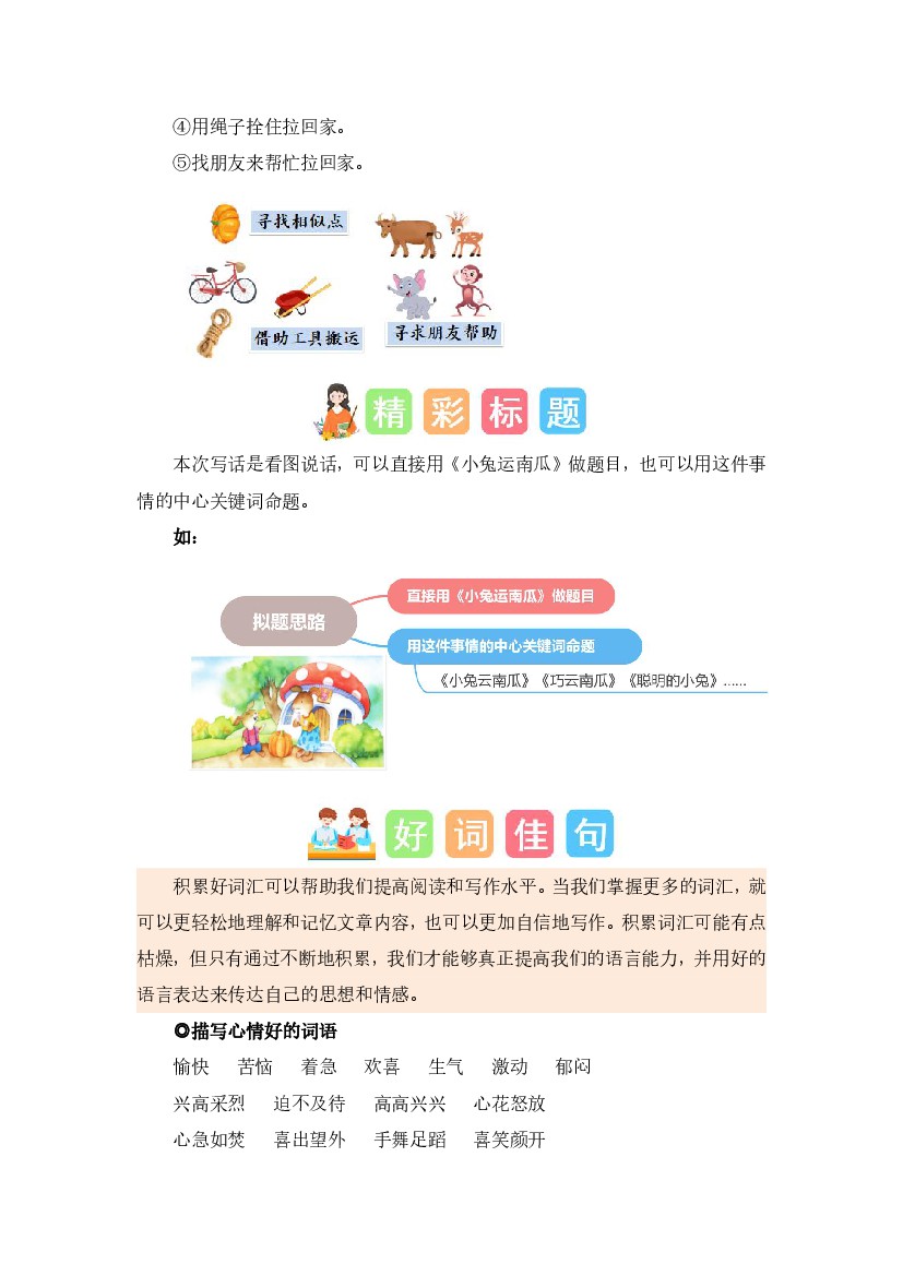 小学 一年级(上)语文 第八单元写话:我会想办法(素材积累)《统编版》