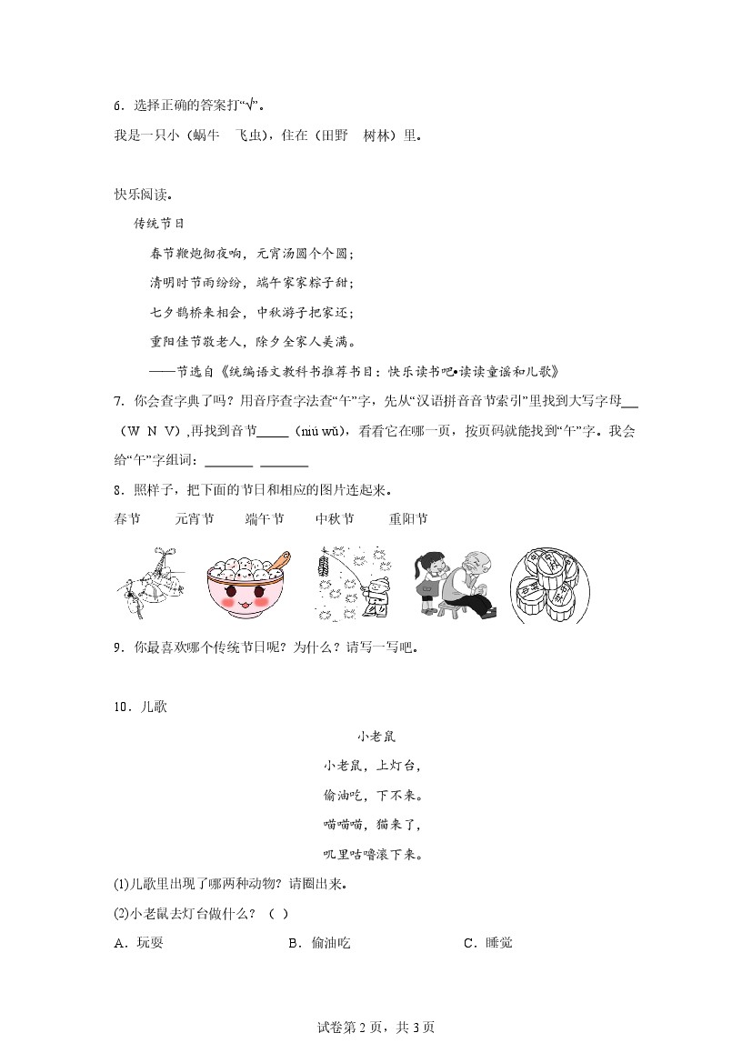小学 25新一年级上册语文快乐读书吧 读书真快乐课后作业(提升)