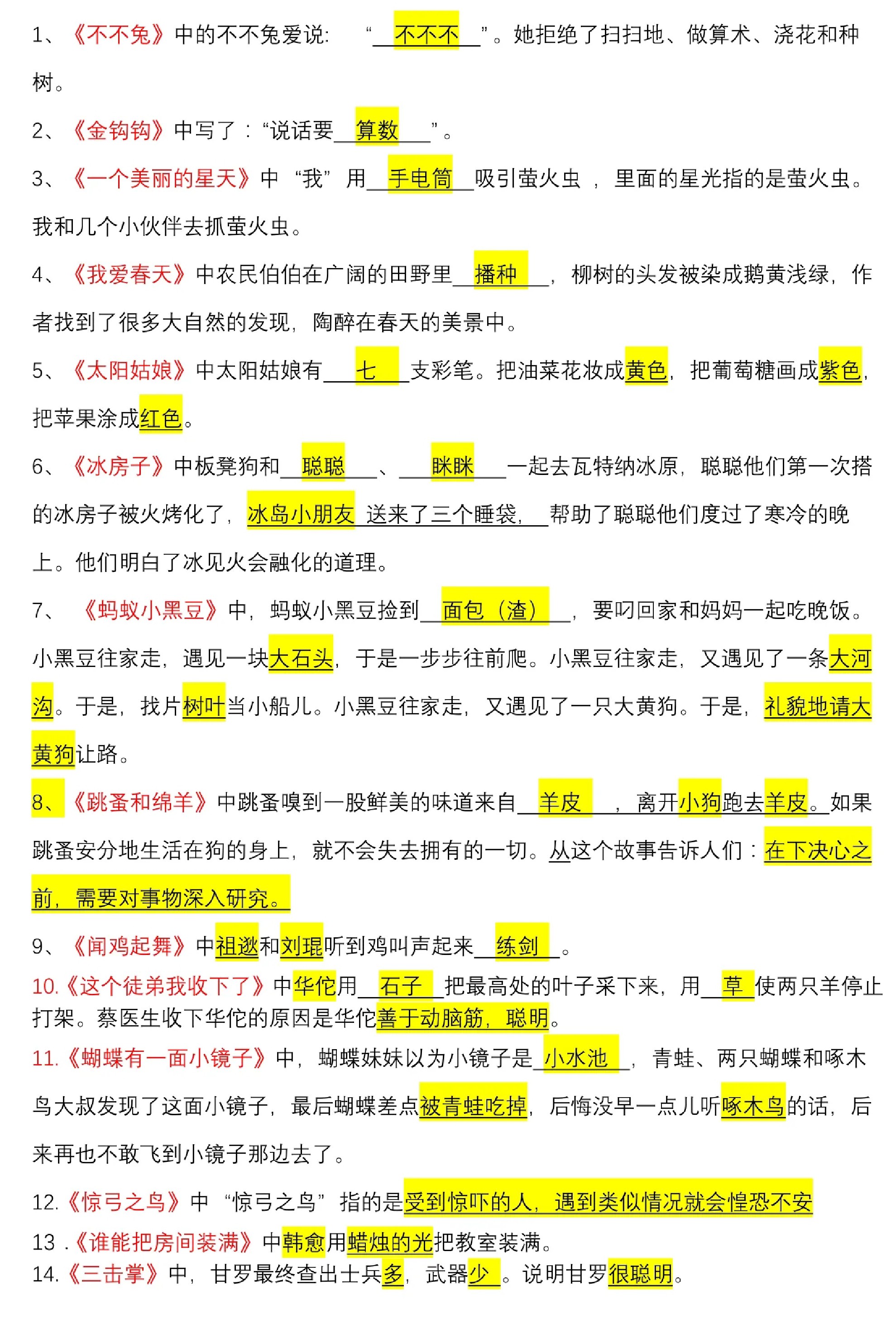 小学 一年级(上)语文 《快乐读书吧》常考知识点