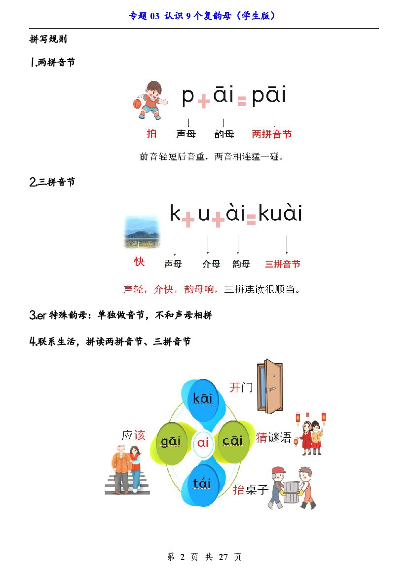 首页 > 全部 > 拼音练习 > 25新【一上语文】拼音专题-专题03 认识9个复韵母(知识+训练)