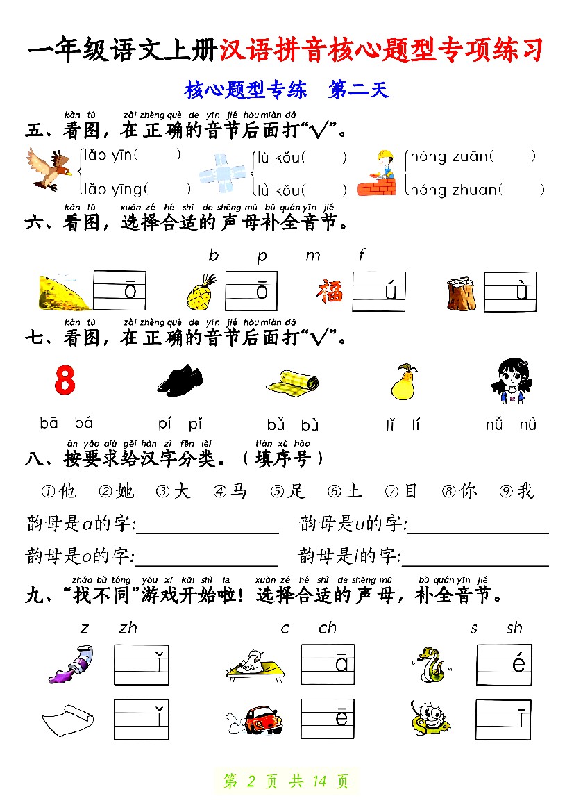 首页 > 全部 > 拼音练习 > 一上语文【拼音核心题专练14天】