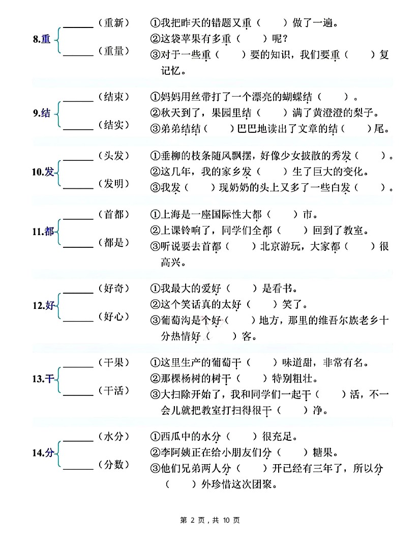 首页 > 全部 > 基础字词 > 二上语文必会多音字专项练习(含答案10页)