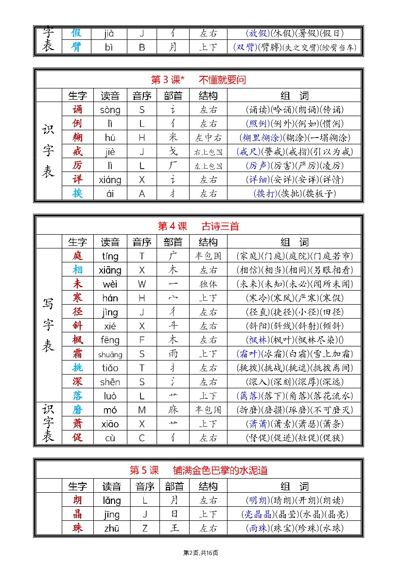 首页 > 全部 > 基础读写 > 【25新三上语文全册课后生字组词(写字表一类字+识字表二类字)16页