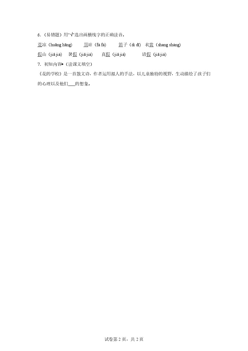 小学 25年秋【三上语文】第2课 花的学校(第一课时)随堂检测