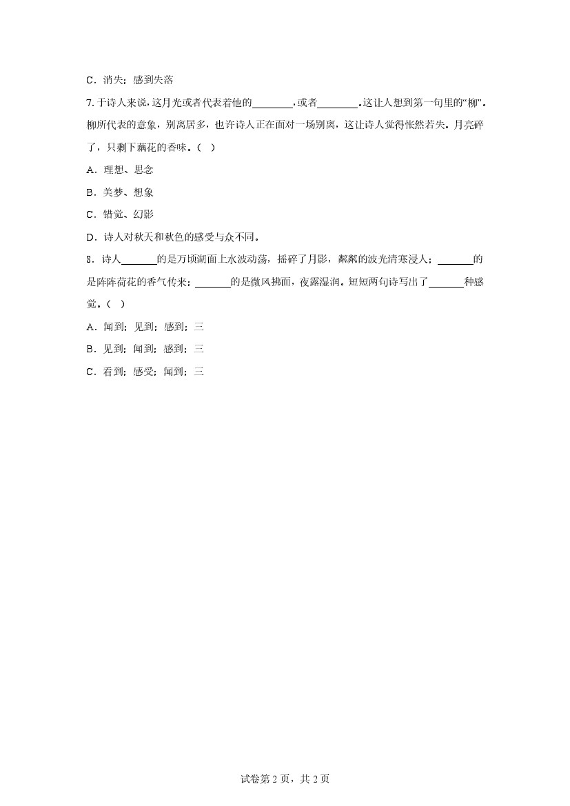 首页 > 全部 > 课时练习 > 25年秋【三上语文】第4课 古诗三首(夜书所见)课后作业(提升)