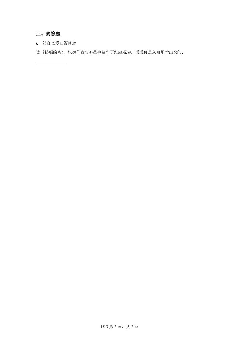 首页 > 全部 > 课时练习 > 25年秋【三上语文】第14课 搭船的鸟(第二课时)随堂检测