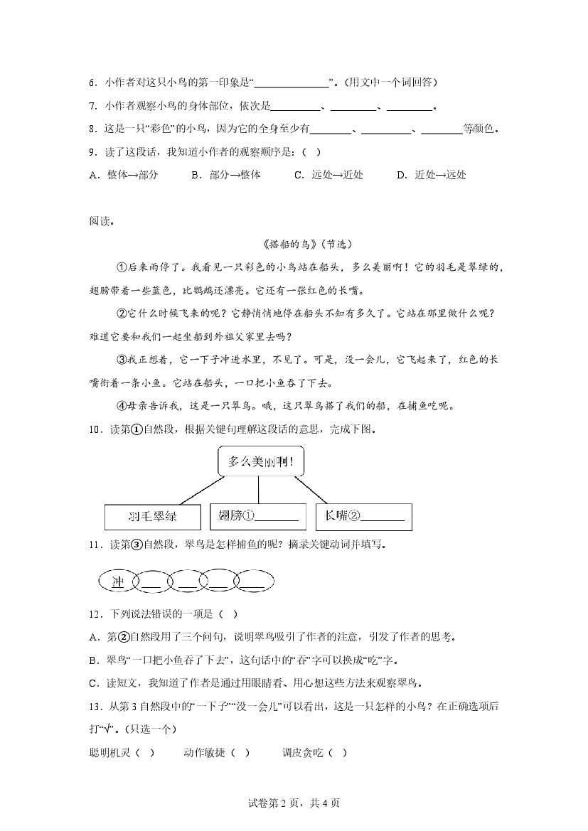 25年秋【三上语文】第14课 搭船的鸟(第二课时)课后作业(基础)