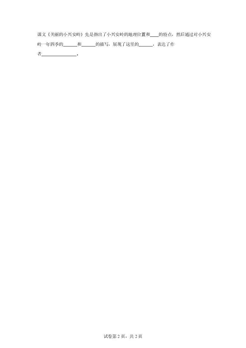 小学 25年秋【三上语文】第18课 美丽的小兴安岭(第一课时)随堂检测