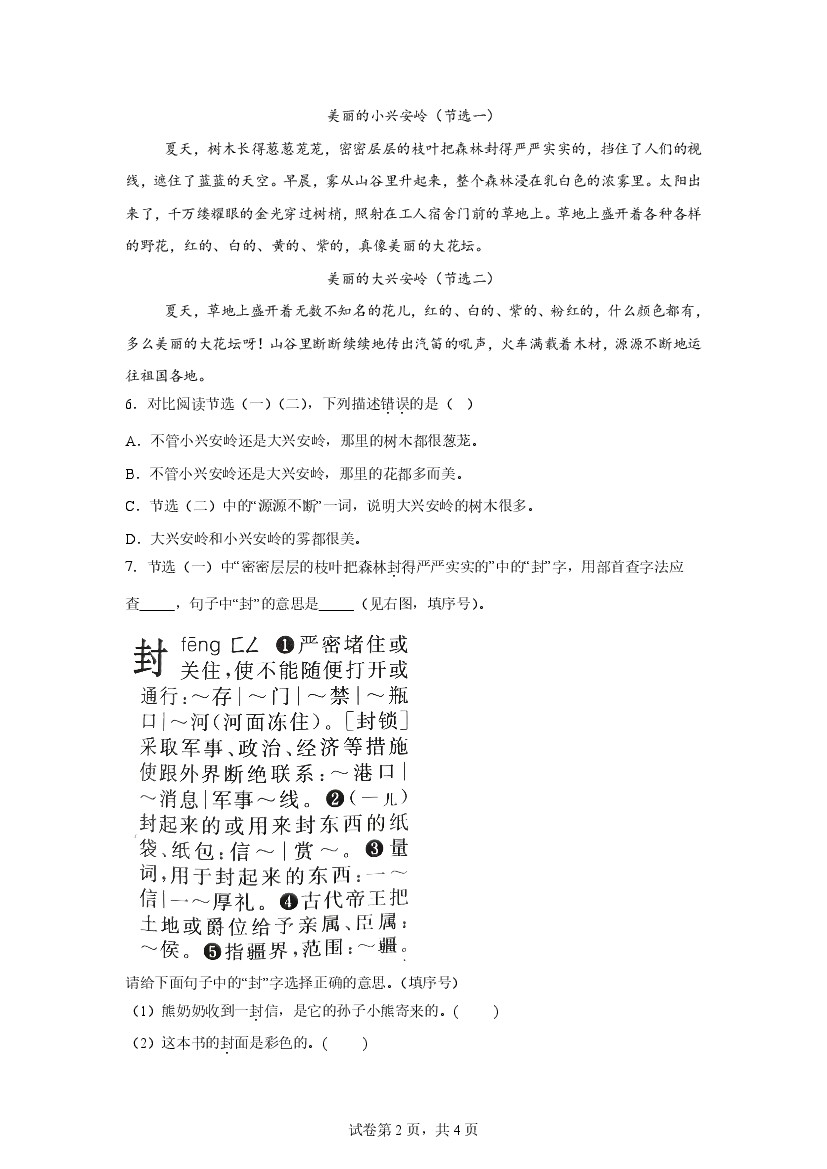 首页 > 全部 > 课时练习 > 25年秋【三上语文】第18课 美丽的小兴安岭(第二课时)课后作业(提升)