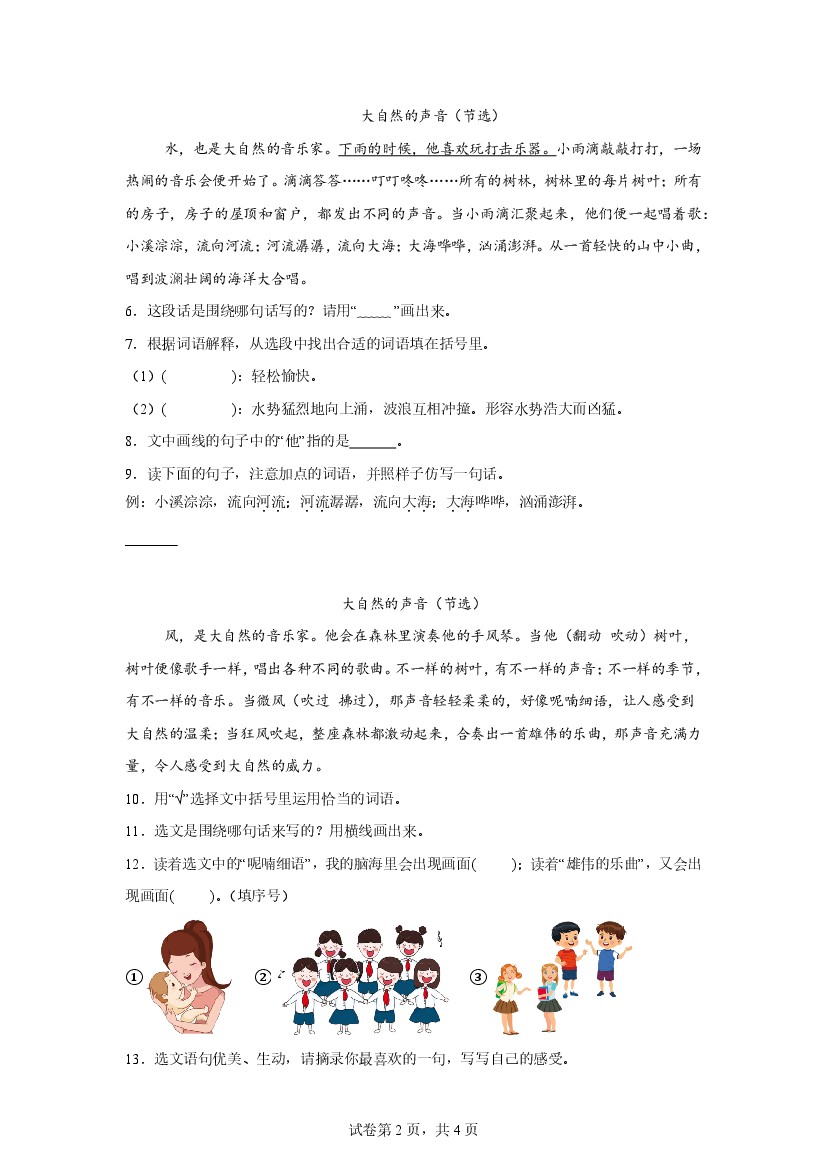 首页 > 全部 > 课时练习 > 25年秋【三上语文】第21课 大自然的声音(第二课时)课后作业(基础)