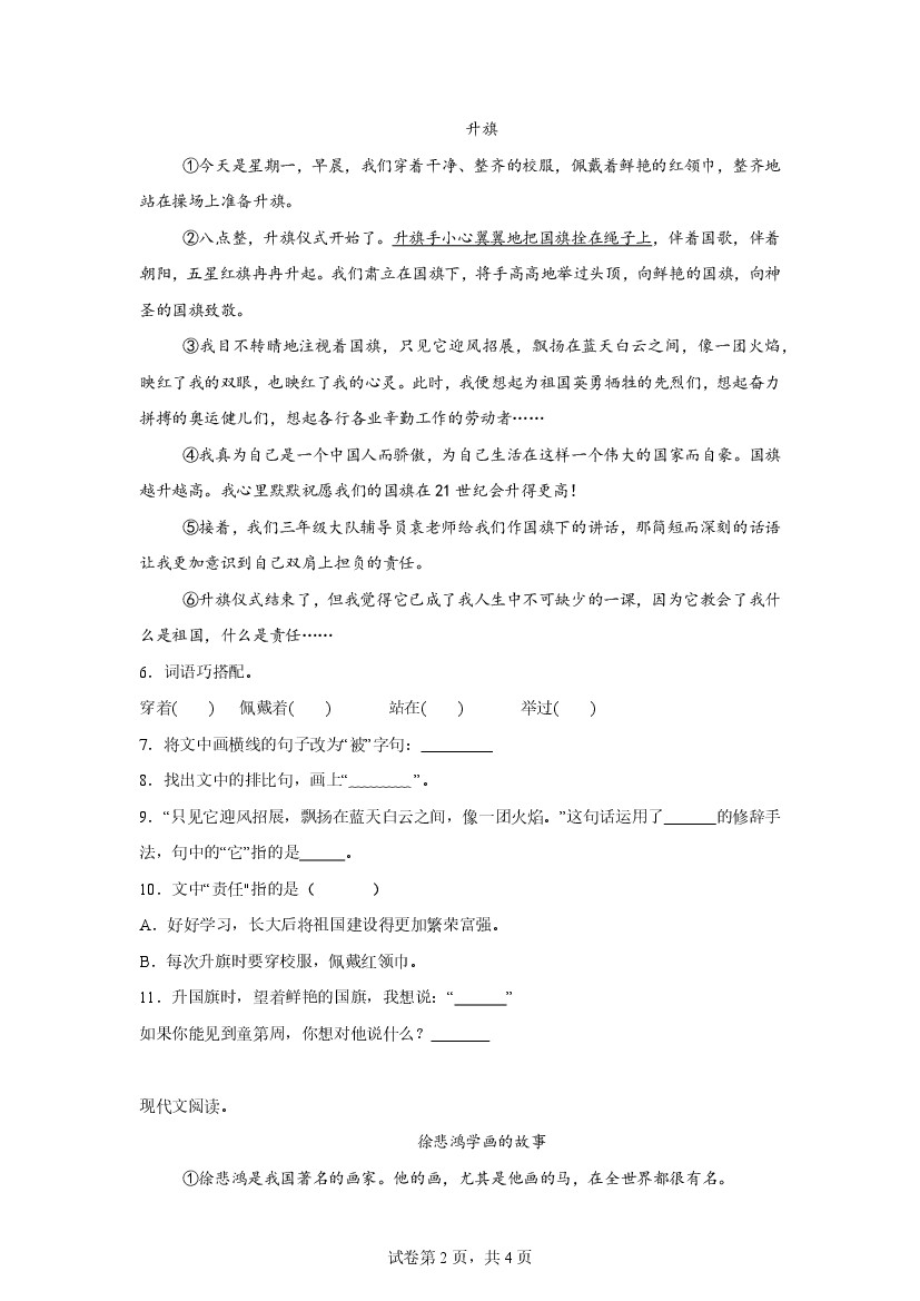 小学 25年秋【三上语文】第24课 一定要争气(第二课时)课后作业(提升)