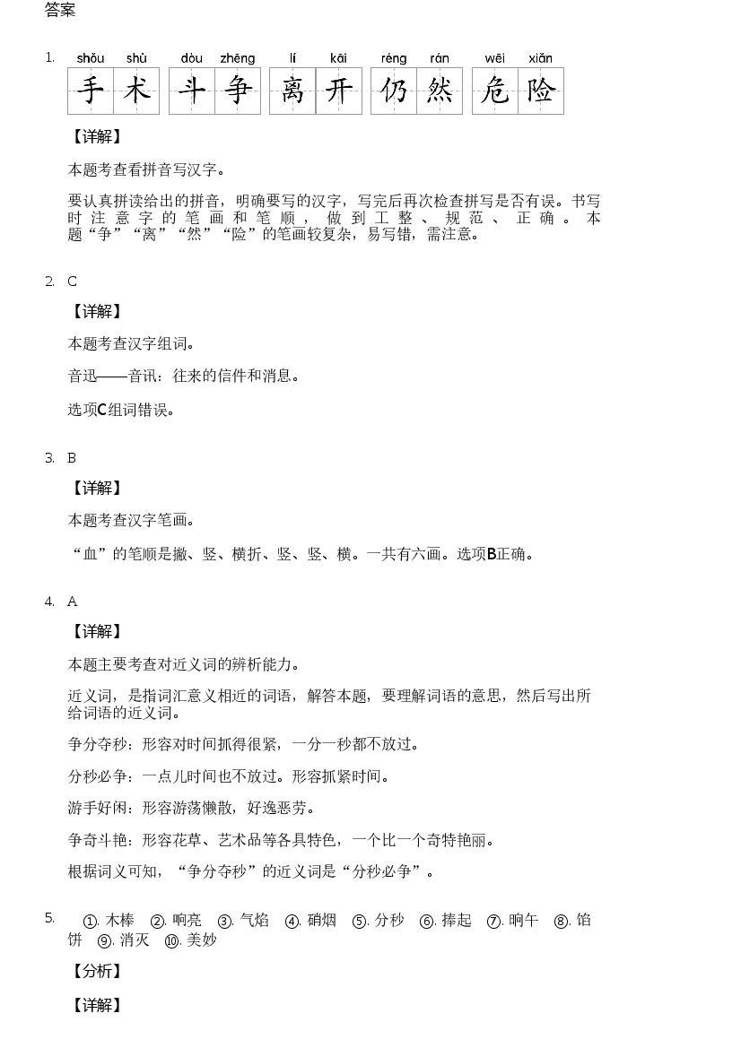 首页 > 全部 > 课时练习 > 25年秋【三上语文】第25课 手术台就是阵地(第一课时)随堂检测