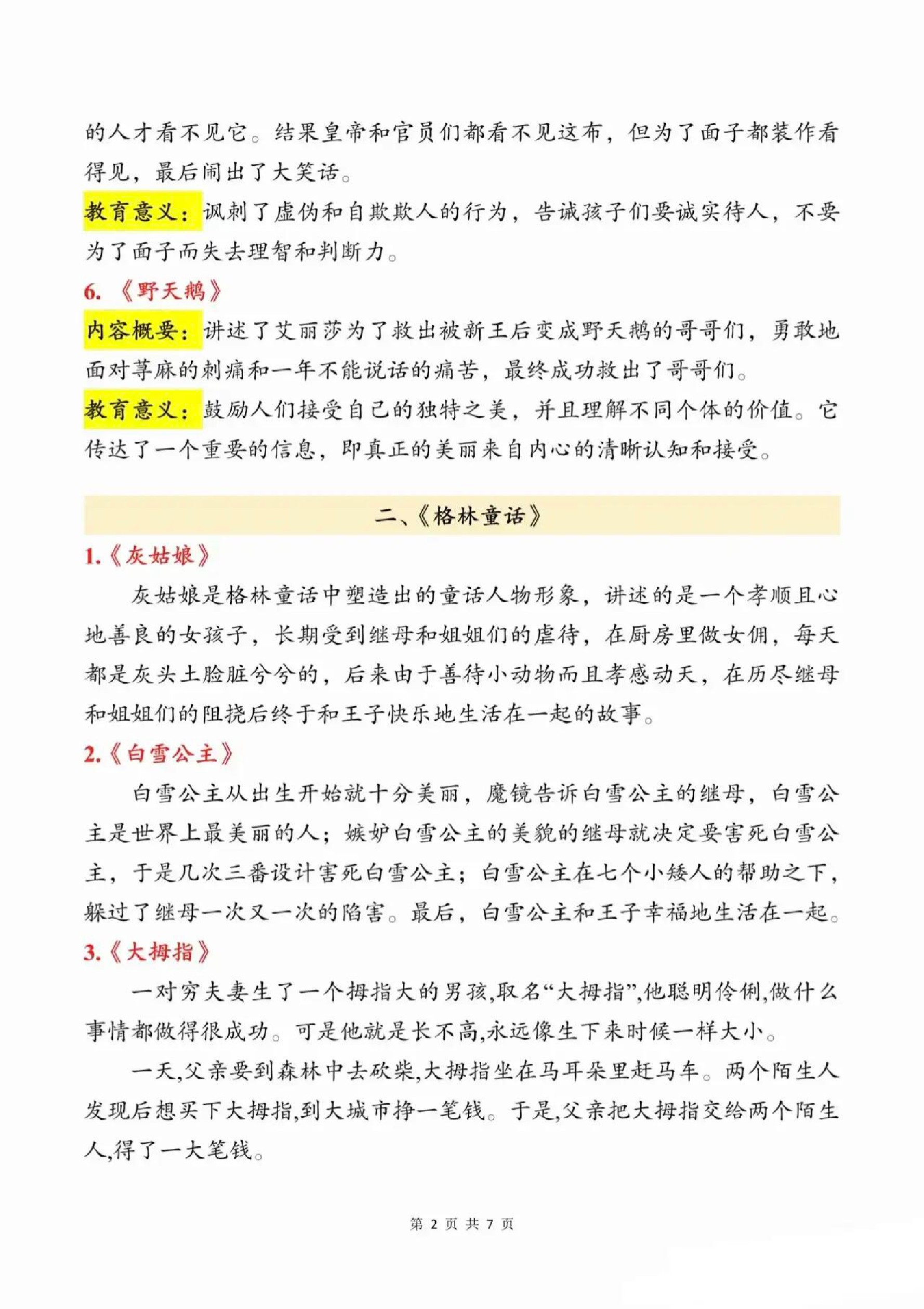 小学 三上语文快乐读书吧知识点汇总(安徒生童话、格林童话、稻草人)7页