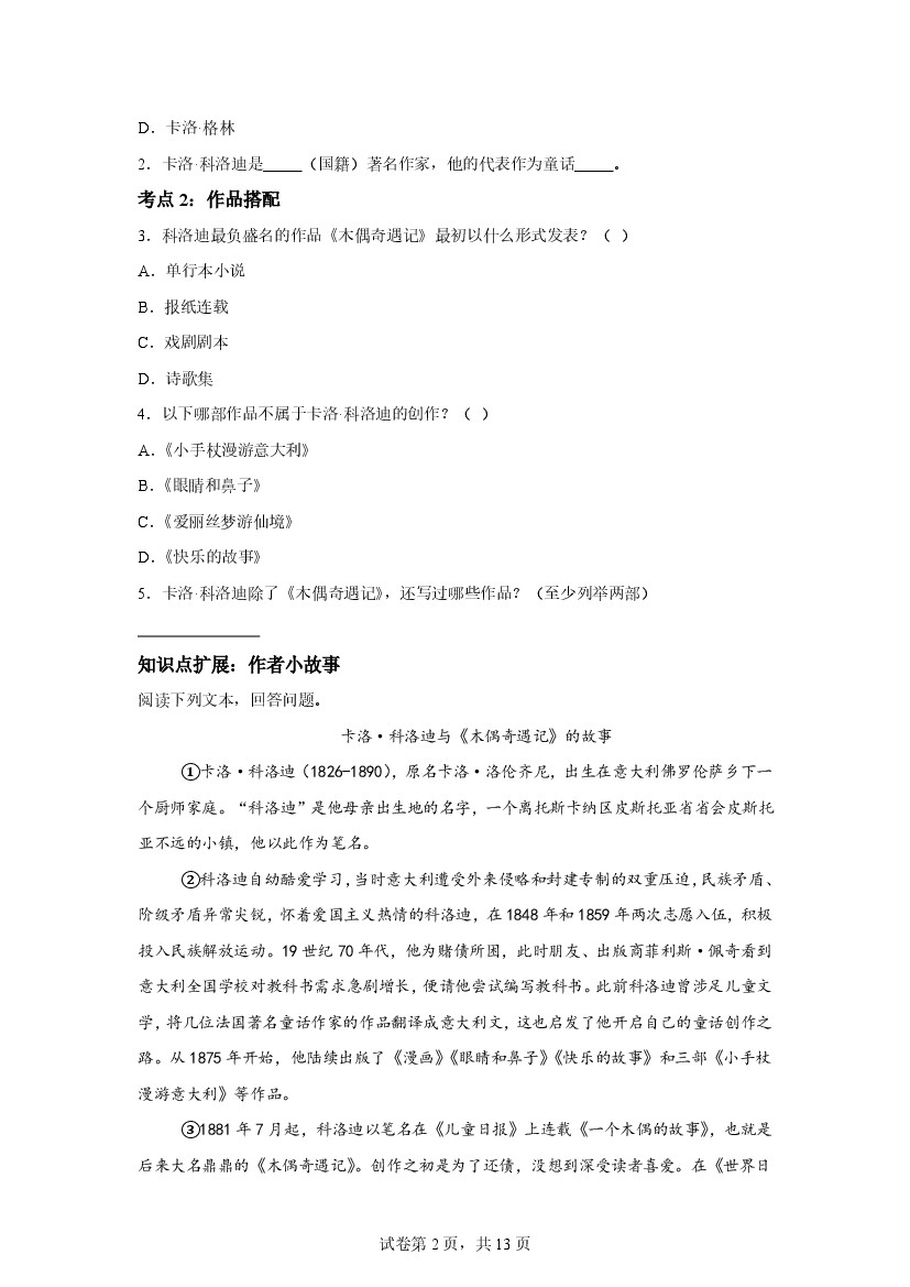 统编版语文三年级上册整本书阅读:木偶奇遇记
