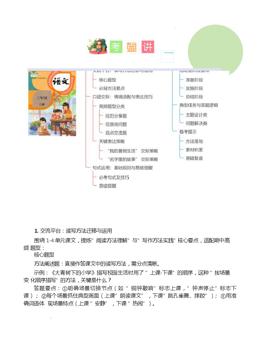 专题 09 语言和综合实践(期中专项训练)三年级语文上学期(统编版·新教材)