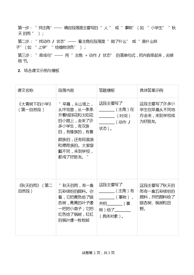 阅读专题02:概括段落、文章主要内容(期中专项训练)三年级语文上学期(统编版·新教材)