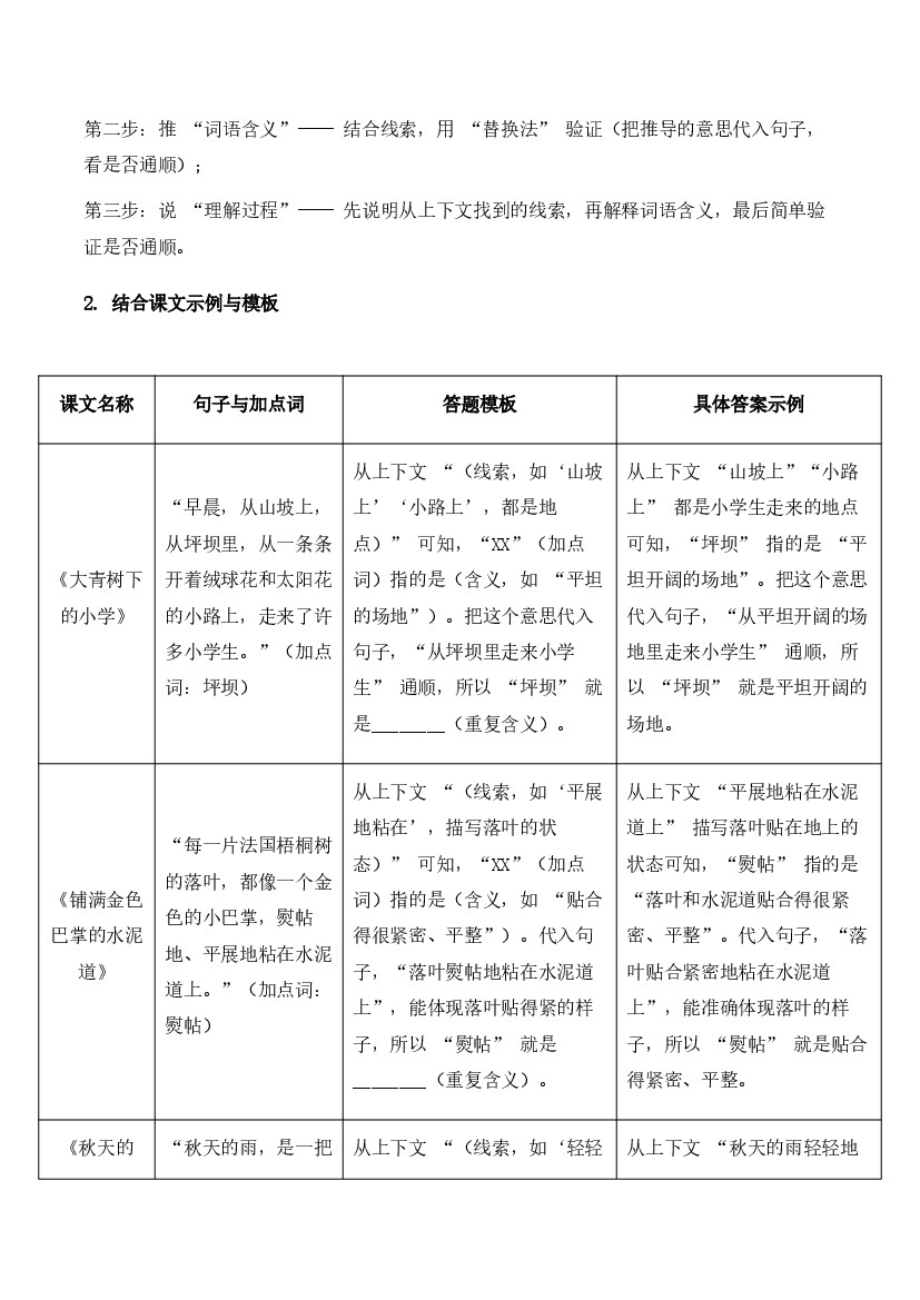 三年级(上)语文 阅读专题01:理解加点字、关键词的意思(期中专项训练)