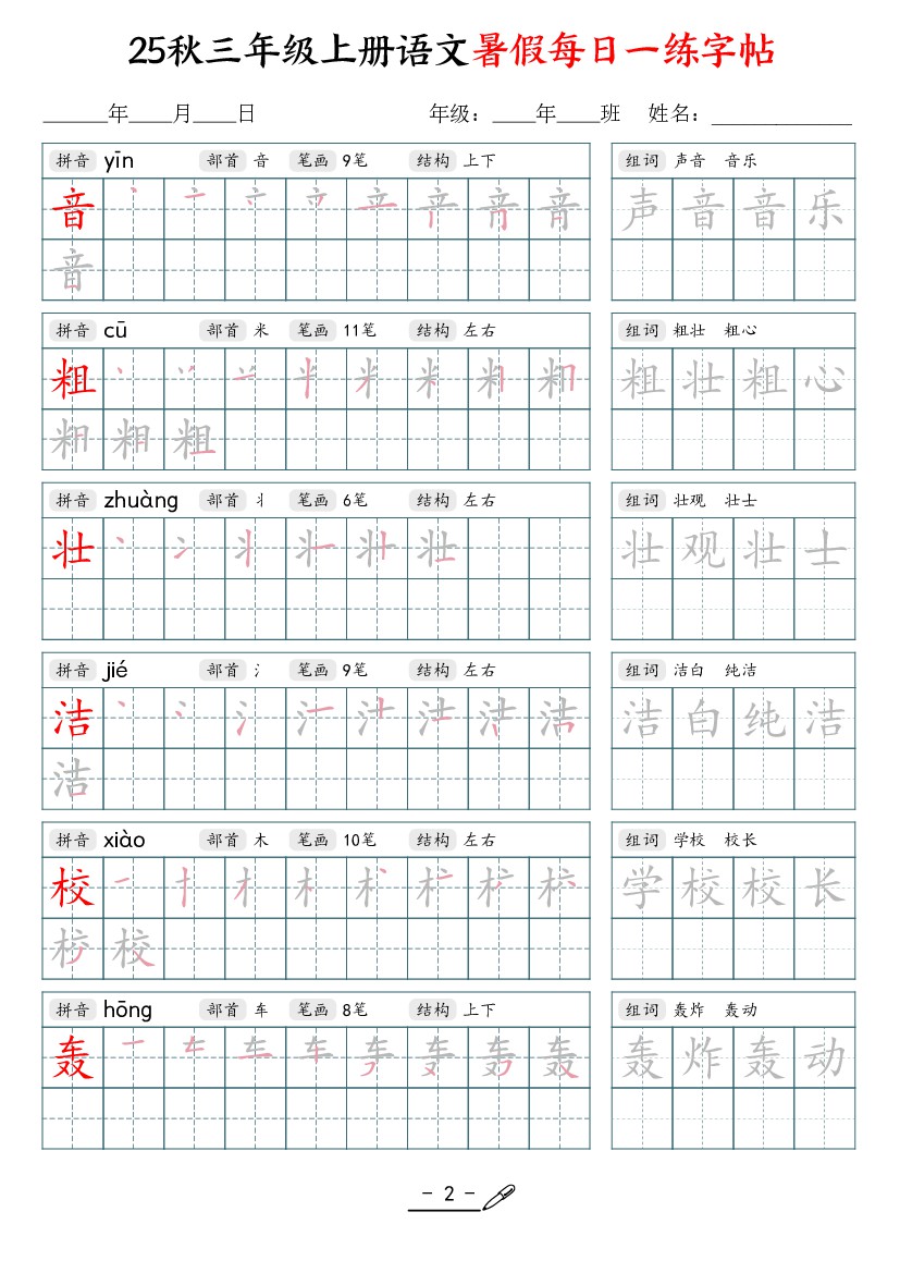 首页 > 全部 > 生字字帖 > 三年级上语文暑假每日一练字帖40页
