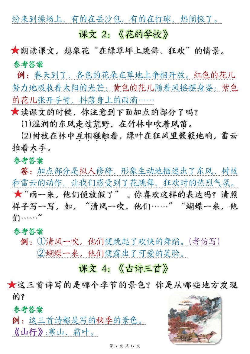 小学 三年级语文上册课后练习题参考答案(暑假预习)