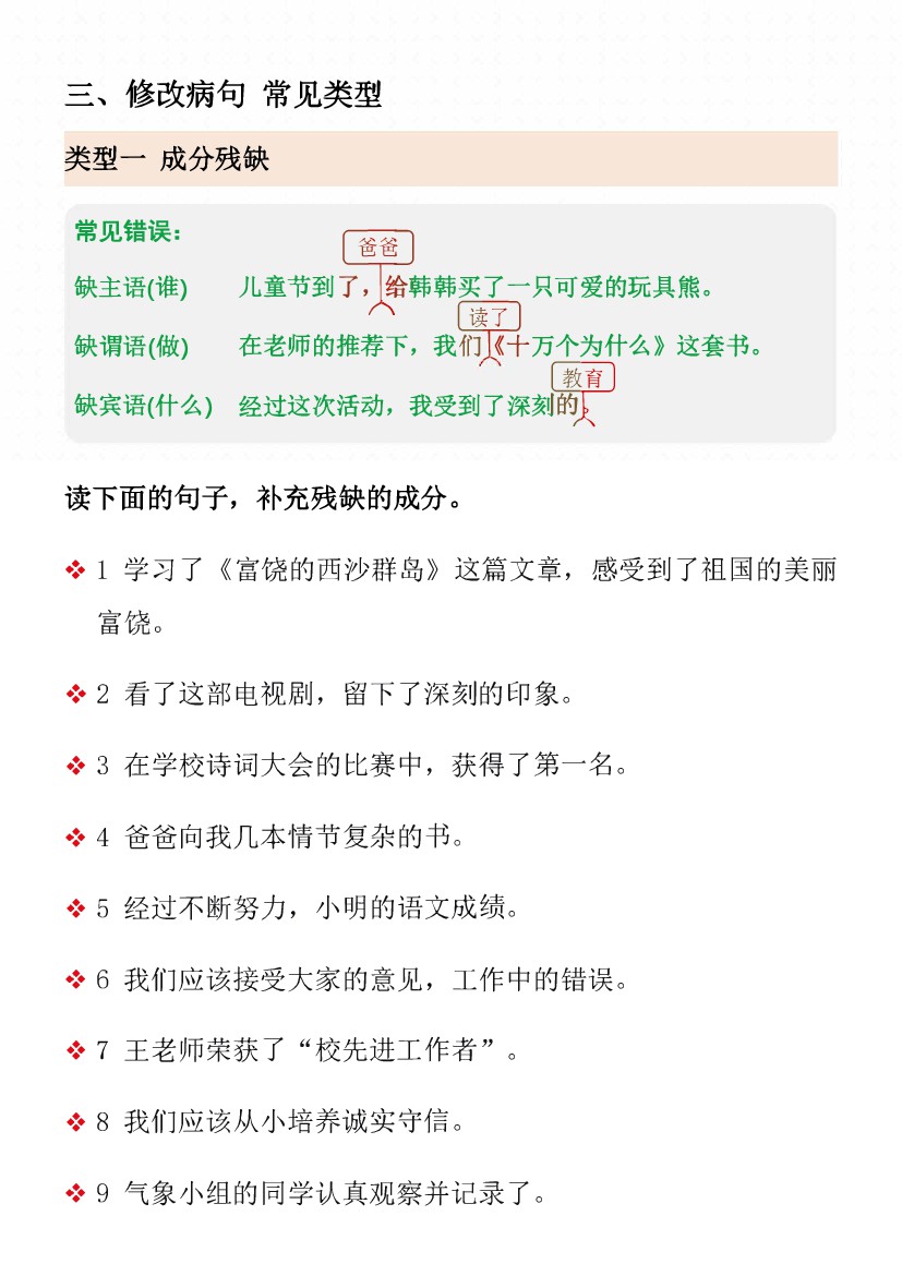 首页 > 全部 > 语句专项 > 25秋新版三年级上册语文修改病句训练