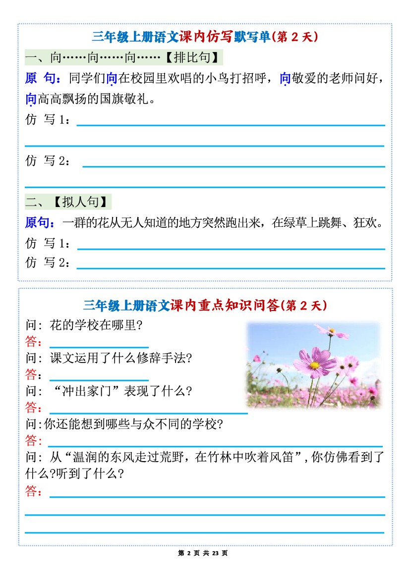 新三上语文1-8单元课内仿写默写单+课内重点知识问答(含答案46页)