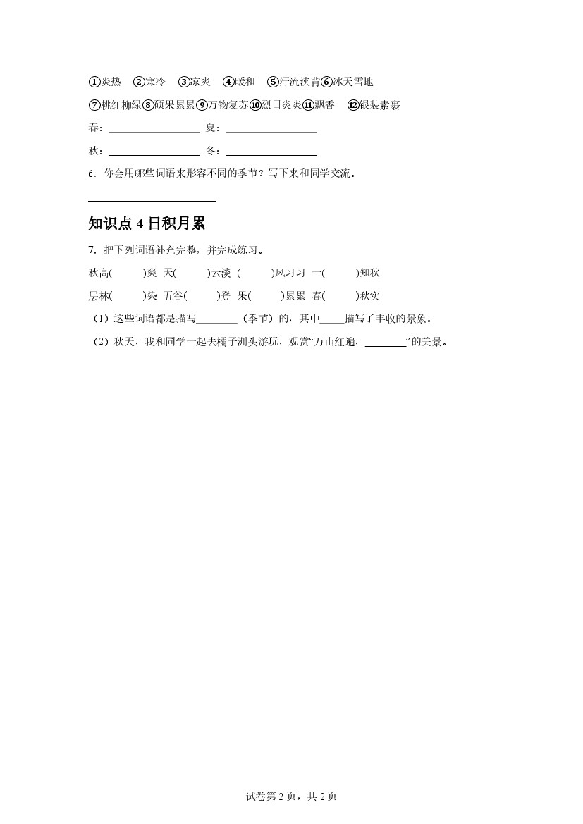 25年秋【三上语文】第二单元语文园地课后作业