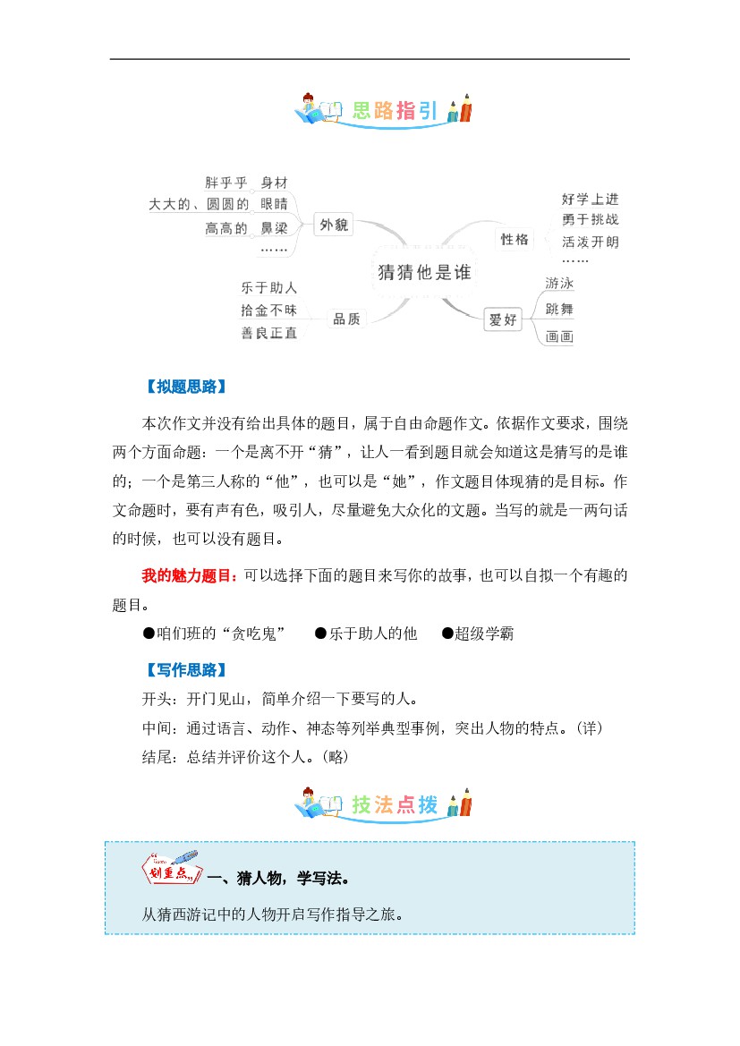 人教部编版三年级语文上册第1单元同步作文:猜猜他是谁-写作指导+范文赏析+病文升格-部编版语文三年级上册