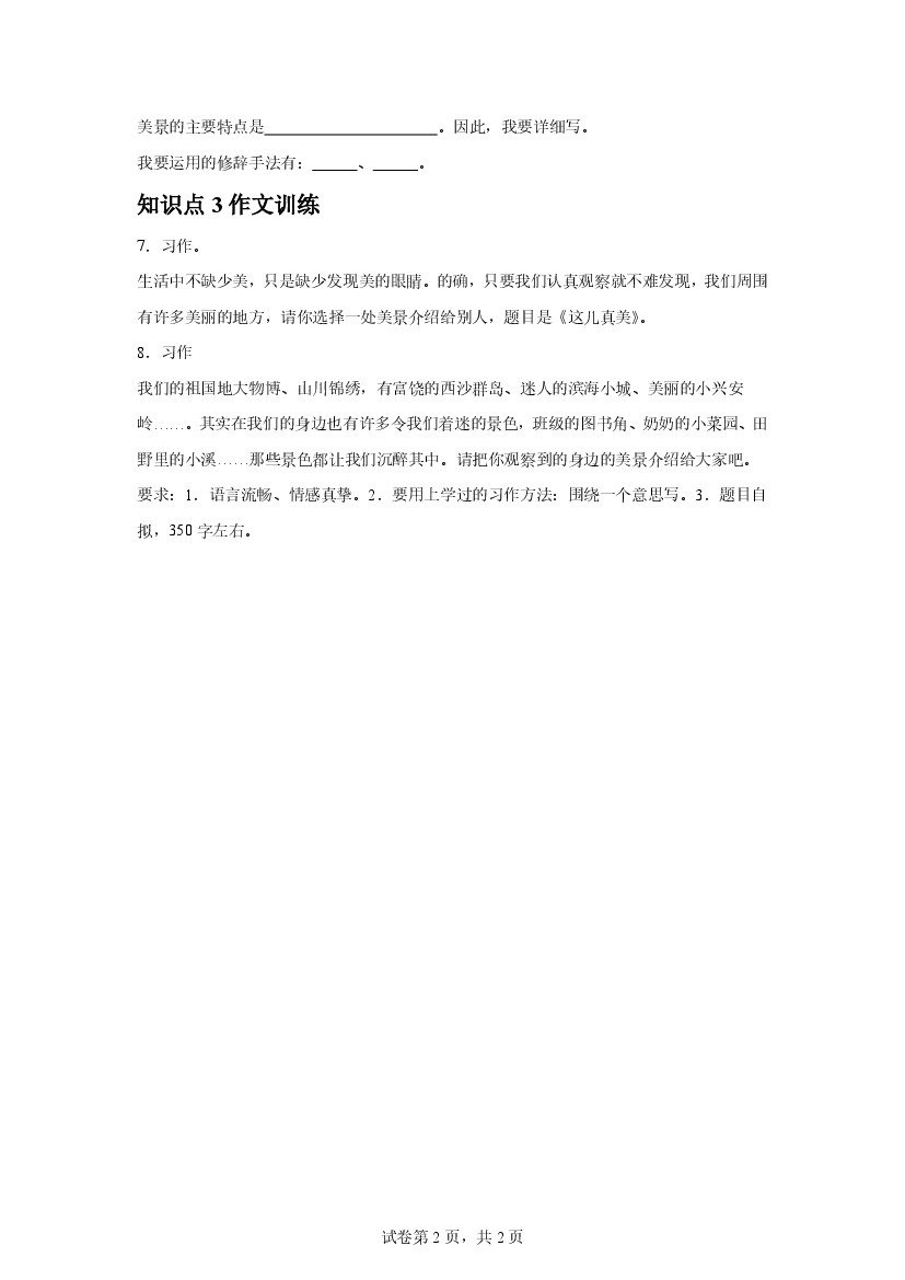 首页 > 全部 > 作文天地 > 25年秋【三上语文】第六单元习作:这儿真美课后作业