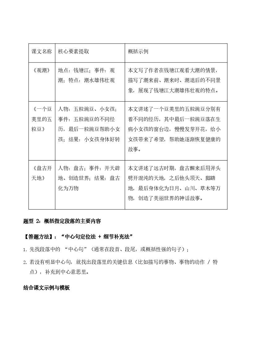四年级(上)语文 期中阅读复习(概括文章主要内容)
