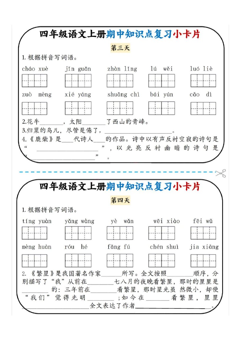 首页 > 全部 > 期中专项 > 《期中知识点复习小卡片》(4上)(1)