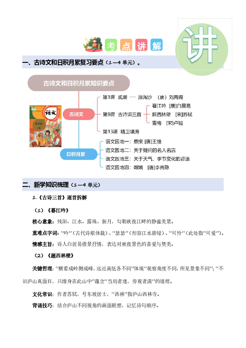 小学 四年级(上)语文 期中专项训练专题5:古诗文和日积月累