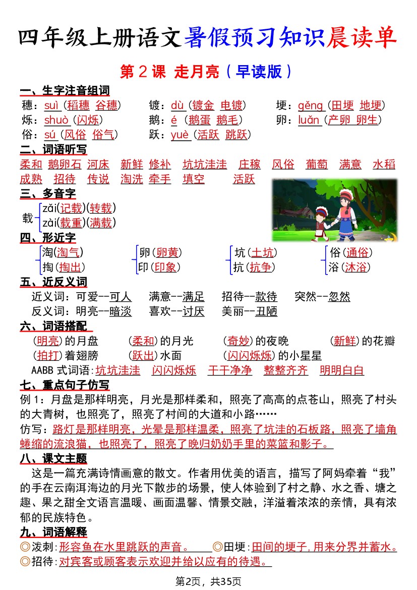 首页 > 全部 > 假期练习 > 四上语文暑假预习知识晨读单(35页)