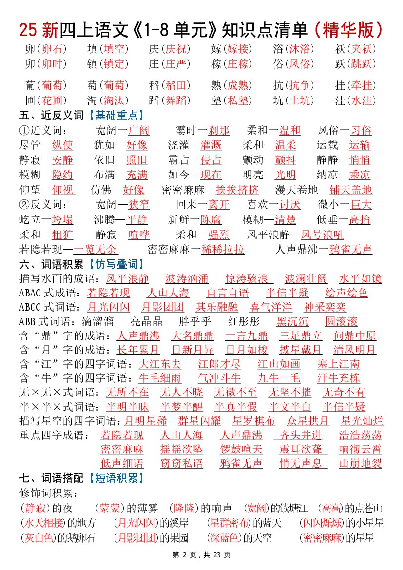 【25新四上语文1-8单元知识点清单(精华版)九大核心考点23页